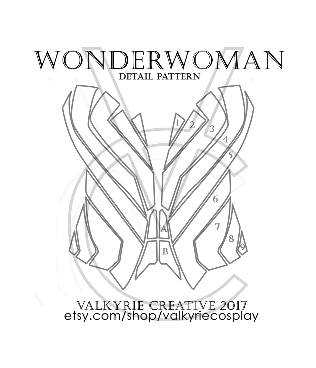 This is a printable PDF template with detailing patterns for the new Wonderwoman's corset.